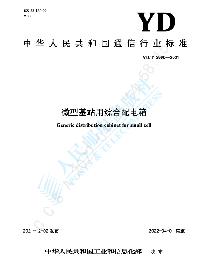 我司參與起草的行業(yè)標(biāo)準(zhǔn)《微型基站用綜合配電箱》(YD/T 3990-2021)經(jīng)中華人民共和國(guó)工業(yè)和信息化部批準(zhǔn)發(fā)布,已于2022年04月01日實(shí)施。以上標(biāo)準(zhǔn)是繼《數(shù)據(jù)設(shè)備用網(wǎng)絡(luò)機(jī)...