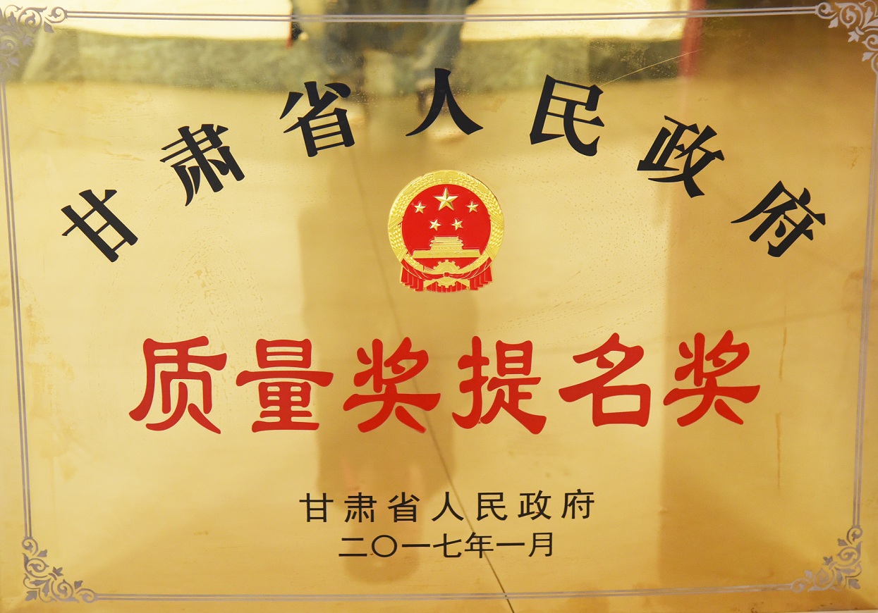 甘肅省人民政府質(zhì)量獎提名獎